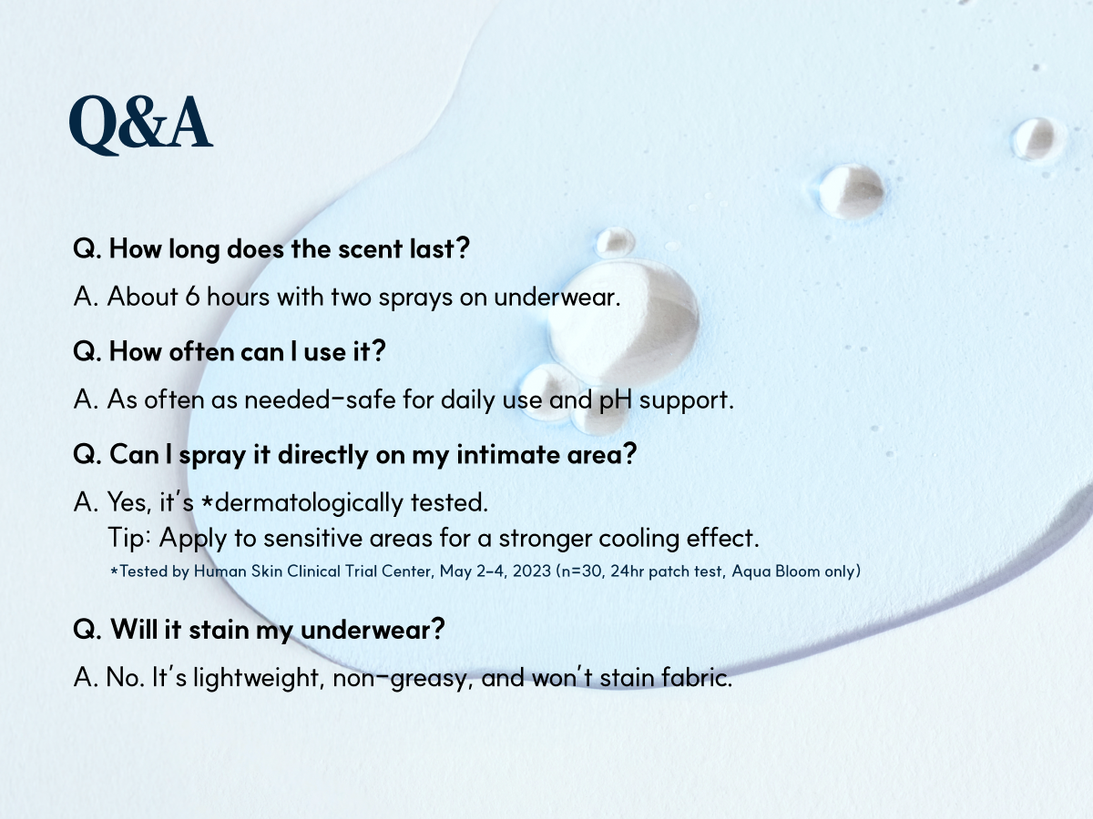 A refreshing pH-safe mist spray that quickly neutralizes unwanted odor.