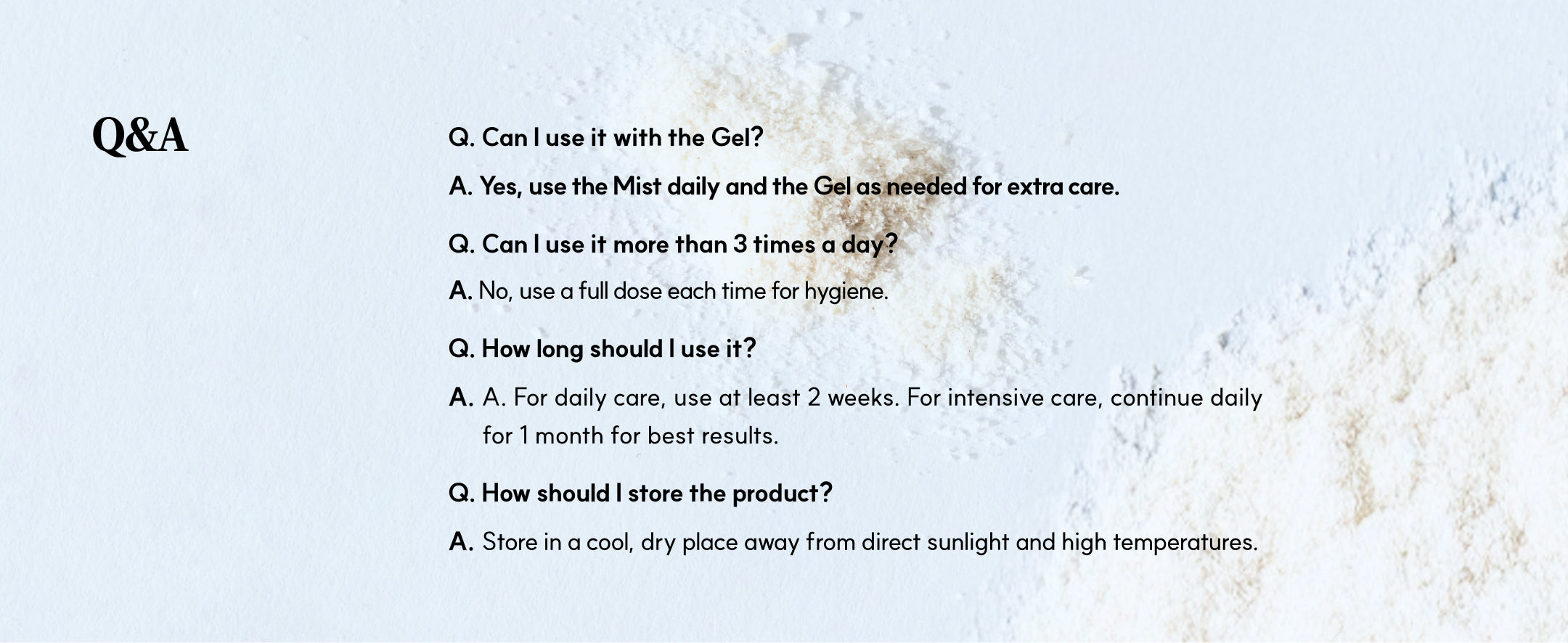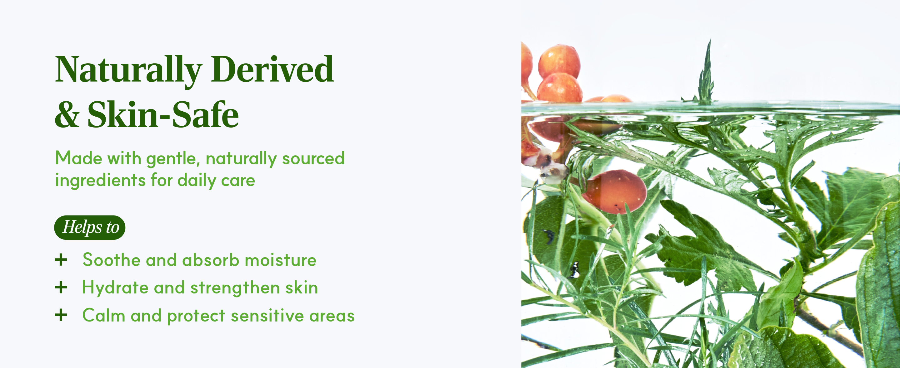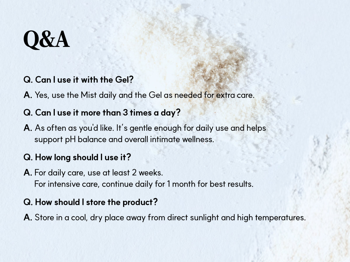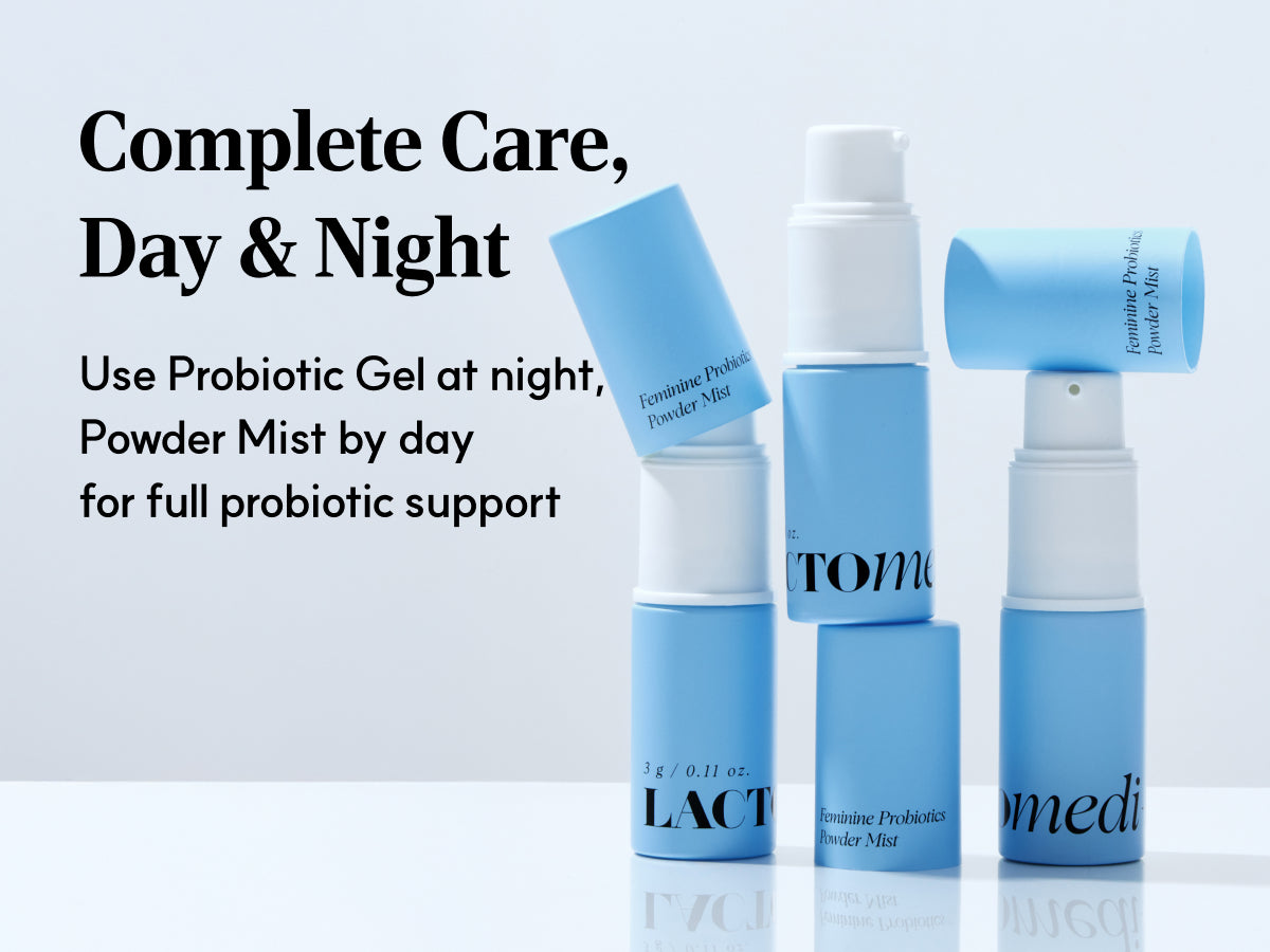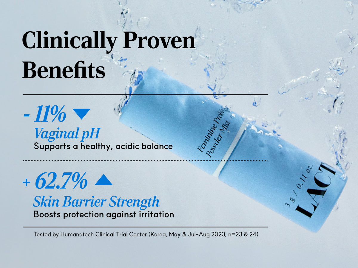 Highly concentrated pre + probiotic powder mist for moisture control and natural balance.