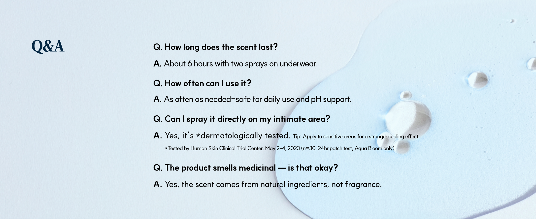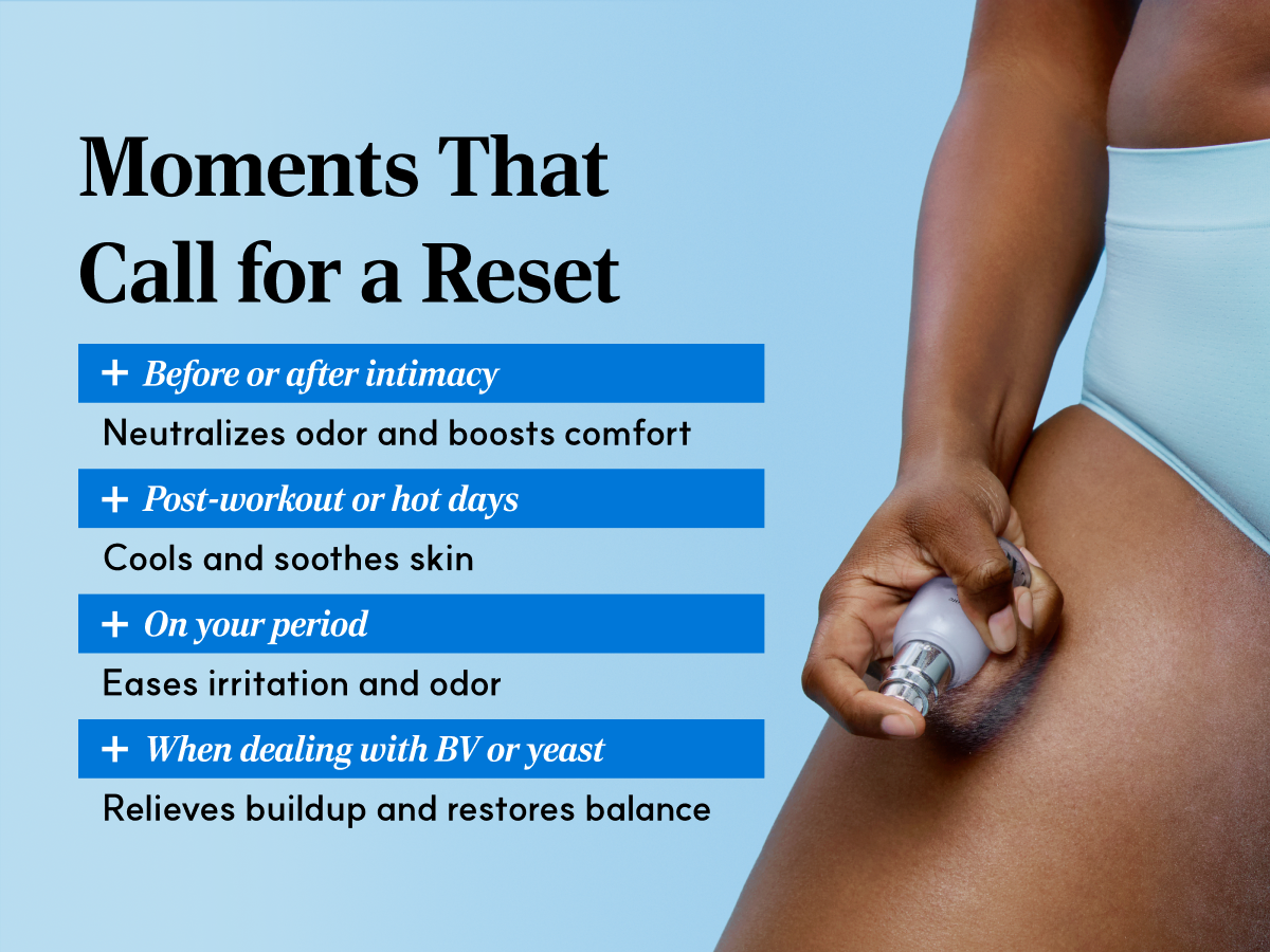 A refreshing pH-safe mist spray that quickly neutralizes unwanted odor.