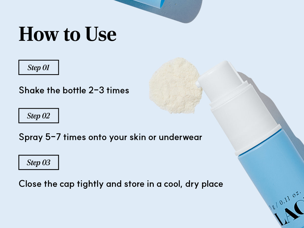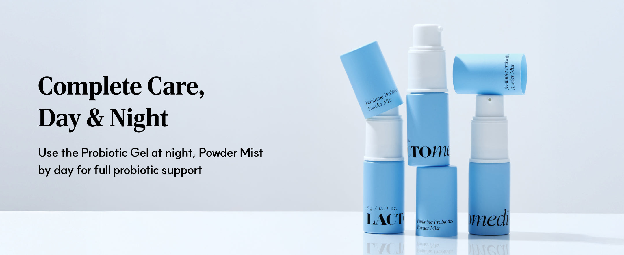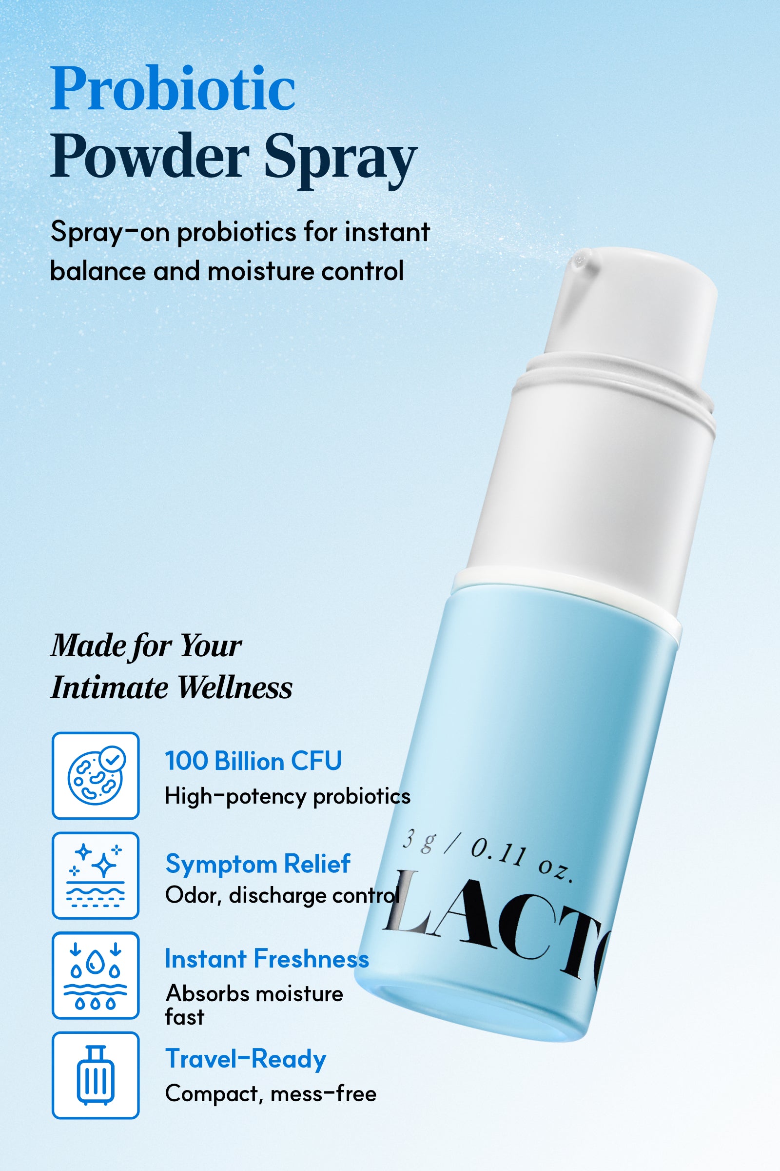 Highly concentrated pre + probiotic powder mist for moisture control and natural balance.